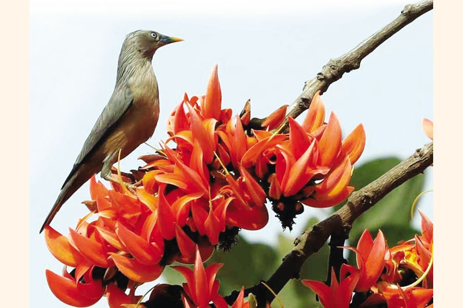 Moreover winter is seen as the time when life goes dormant. Indeed, it happens where temperature drops to well below zero degree Celsius and snow and ice make vegetation impossible to stay in their original shapes. In this country, trees become somewhat pale but not denuded. In fact, this is the time for the most regal and colourful flowers to bloom. Defying the wintry cold, palash (butea monosperma) leads the pack in its fiery regality.