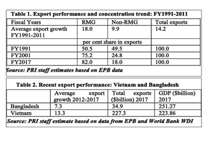 Stepchild of exports - non-RMG: Policy Research Institute of Bangladesh (PRI) research has clearly demonstrated why we need to look at RMG and non-RMG exports differently. It is important to recognise the clear dichotomy in our export scenario. RMG is on a different track altogether as far as production structure, global demand, and domestic policies are concerned. Non-RMG exports which also have worldwide markets suffer from a less favourable policy regime at home. To be sure, while the RMG sector has matured, many other labour-intensive exports are waiting in the wings, to take off. But that is not happening. Why?