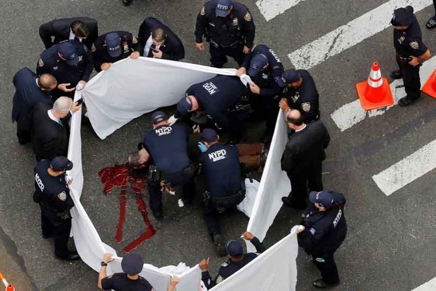 Associated Press said Department spokesman Frank Giancamilli wouldn't comment on the weapon but says the suspect was also wearing a bulletproof vest under a coat.