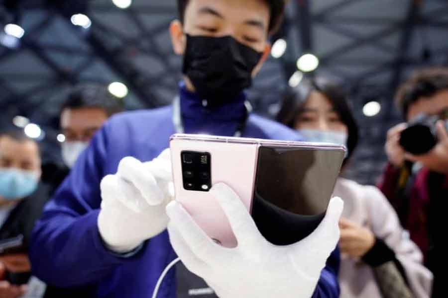 A staff member holding Huawei's new 5G Mate X2 foldable phone at the Mobile World Congress (MWC) in Shanghai of China on February 23 –Reuters file photo
