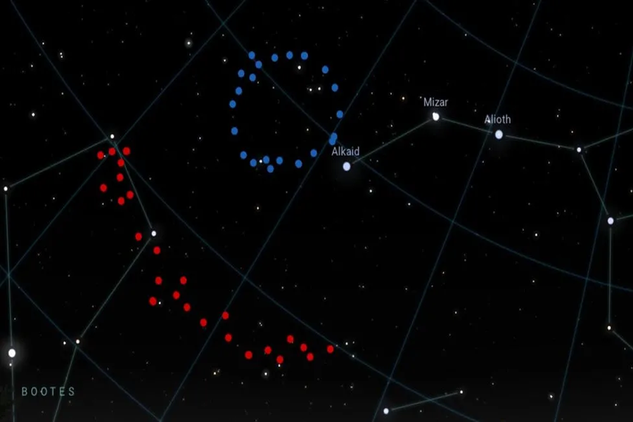 Both the Big Ring and the Giant Arc appear relatively close together, near the constellation of Bootes the Herdsman.