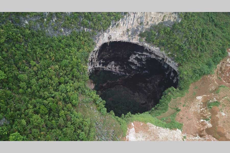 The giant sinkholes, also known as Tiankeng in China, are dolines, or giant pits, with special geological features found in karst regions formed by repeated cave-ins. They are mainly found in China, Mexico and Papua New Guinea.
