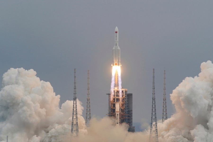 According to Yonhap news agency, the Long March 5B rocket was launched last week carrying a module of China's first permanent space station into orbit. But a large piece of debris is expected to plunge back in an uncontrolled re-entry on around Saturday (US time), according to the US Space Command.