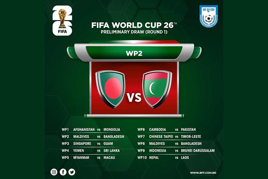 Bangladesh will play against familiar Maldives in the first round of joint qualifiers of 2026 FIFA World Cup as the draw for the first round was held at AFC headquarters in Kuala Lumpur, Malaysia, on Thursday.