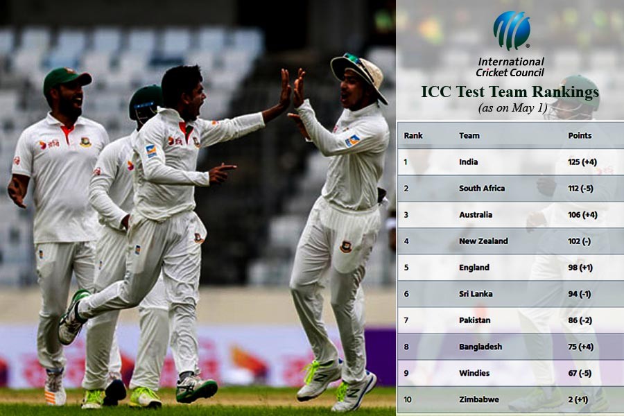 Bangladesh have moved ahead of the West Indies to the eighth position for the first time in the ICC test rankings.