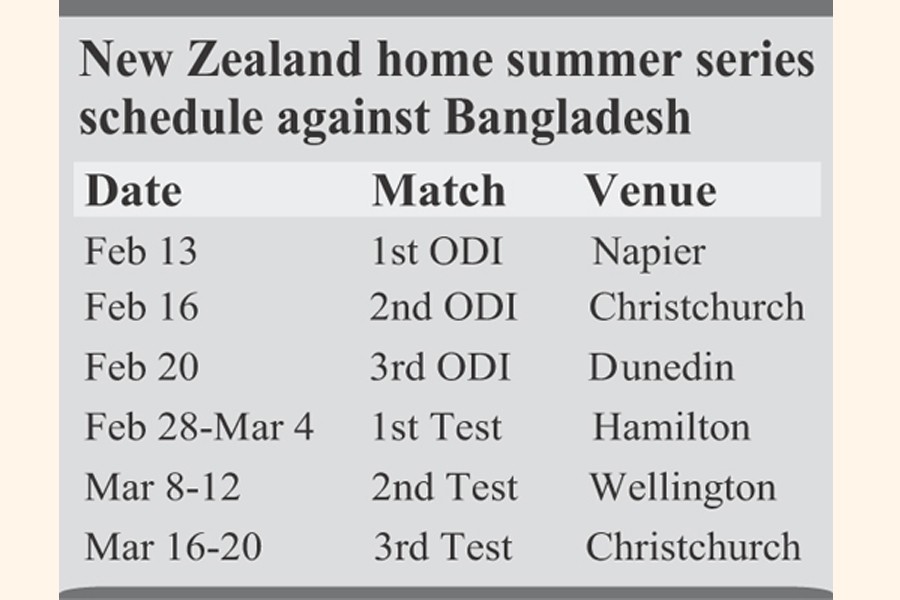 Once India's tour of New Zealand ends with the last T20 on February 10, the hosts will take on Bangladesh for three ODIs, followed by a three-Test series. This will be Bangladesh's first three-Test series since hosting Zimbabwe in 2014. The three Tests will be played in Hamilton, Wellington and Christchurch.