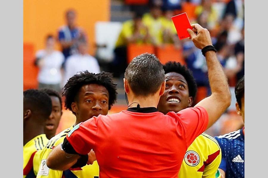 Colombia's Carlos Sanchez was sent off within the first three minutes of his side's 2018 World Cup opener against Japan, the first red card of this year's tournament, reports Goal.