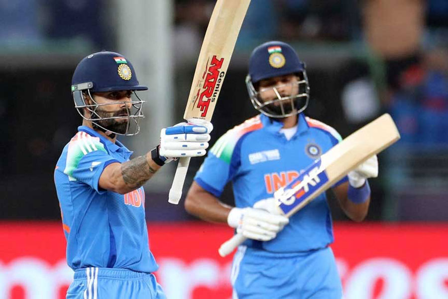 They will meet the winner of Wednesday’s second semi-final between South Africa and New Zealand in the final in Dubai on Sunday.