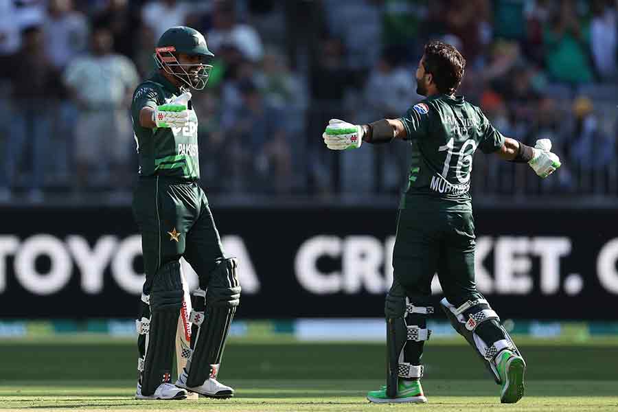 Local speedster Lance Morris (2-24) sent both set batsmen packing in the 18th over to give the crowd of 19,781 something to cheer about, leaving Rizwan (30 not out) and Babar Azam (28 not out) to seal the result.