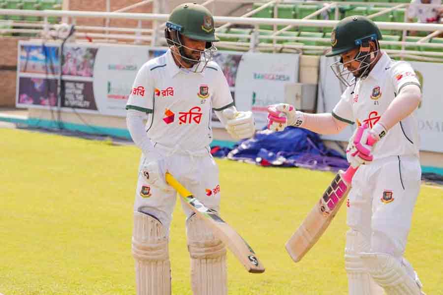 Shadman's was the first wicket to fall on the fourth morning when he was trapped in front by Andy McBrine for 78, and captain Najmul Hossain Shanto, who handed a catch to gully for Jordan Neill's first Test wicket.