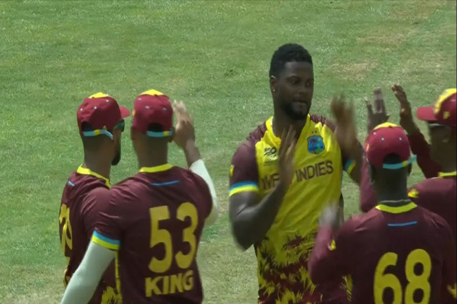 Captain Assad Vala made 21 before being caught by Chase off Alzarri Joseph and Sese Bau helped to stage a partial recovery by taking 14 off a Gudakesh Motie over and reached his half century from 43 balls before he fell lbw to Joseph for 50.