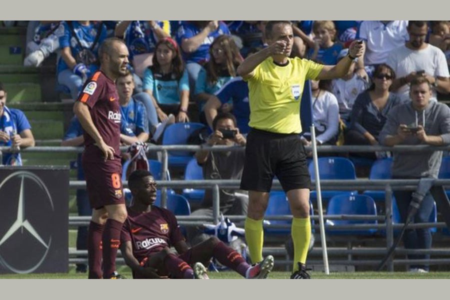 Barcelona forward Ousmane Dembele will be out for up to four months with a hamstring injury.