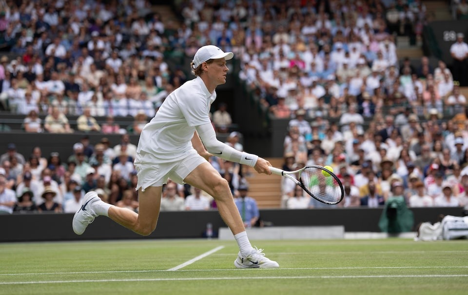 Sinner, bidding to become the first Italian to win a Wimbledon singles title, wore a protective sleeve on his right arm but was rock solid against the big-serving Shelton.