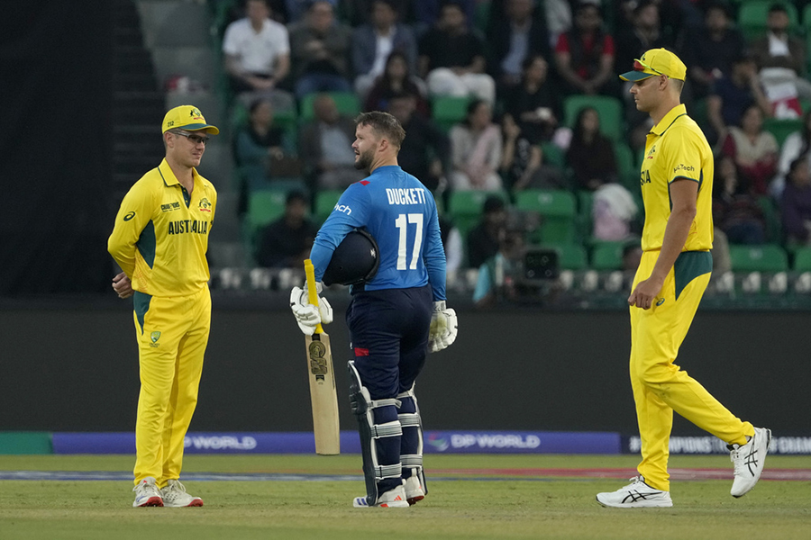 England posted a massive 351 for 8 against Australia in their ICC Champions Trophy clash in Lahore, with Ben Duckett leading the charge with 165 off 143 balls.