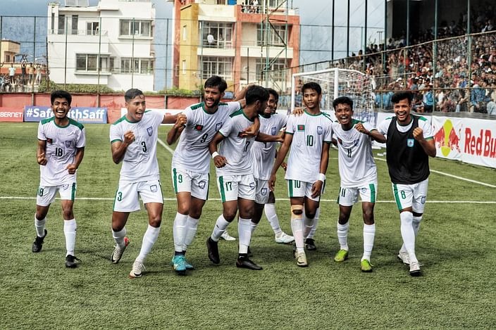 In the first half, Nepal dominated the play but failed to capitalise on their chances, thanks to the resilient performance of Bangladesh's goalkeeper. Just before halftime, Bangladesh was awarded a free-kick outside the penalty area. Mirajul Islam, who had been fouled, took the free-kick himself and delivered a spectacular shot that hit the post and nestled into Nepal's net, giving Bangladesh a 1-0 lead.