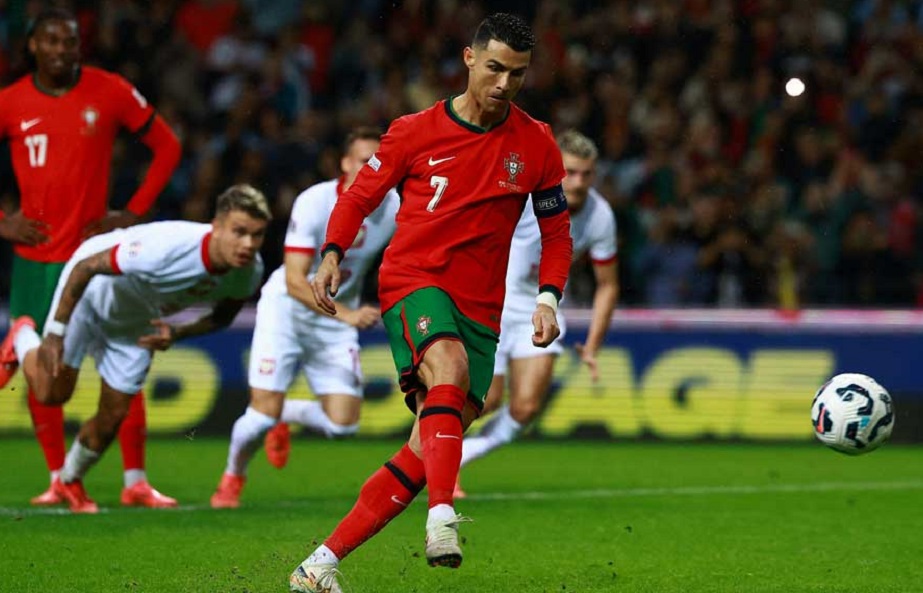 Portugal sealed a Nations League quarter-final berth after a Cristiano Ronaldo double with a penalty and an overhead kick helped them hammer visiting Poland 5-1 in Group A1 on Friday.