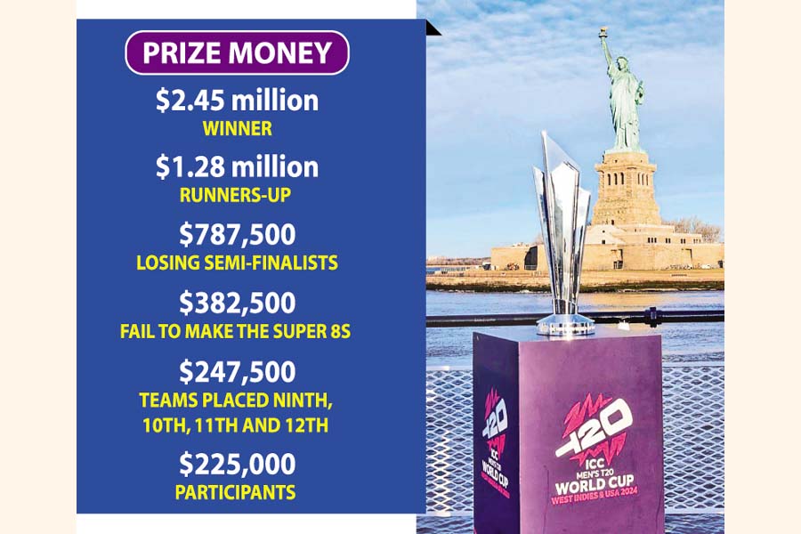The four teams that fail to make it out of the Super 8s will earn USD 382,500 each, while the teams placed ninth, 10th, 11th and 12th receive $ 247,500 each. Participants who finish 13th to 20th place will return $225,000 each.