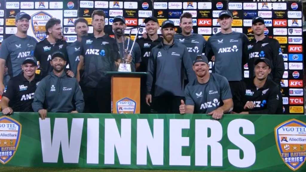 New Zealand clinched the tri-nation title by beating hosts Pakistan by five wickets in the final in Karachi on Friday to give them a major boost ahead of next week's Champions Trophy.