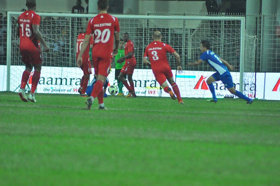 Palestine won the match 4-3 in penalty shootout after the normal time ended goalless at the Bangabandhu National Stadium in Dhaka on Friday.
