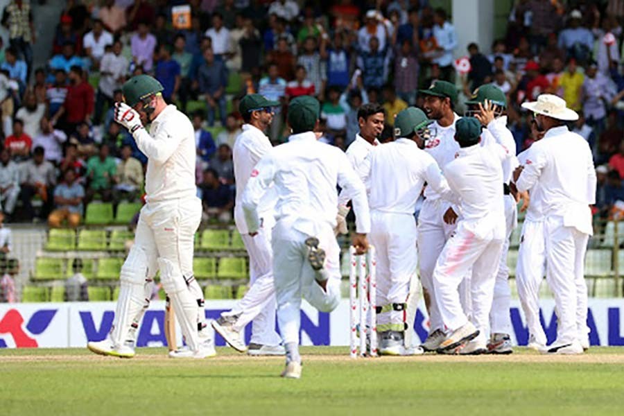 Nazmul Islam picked up his maiden Test wicket on Saturday. Abu Jayed also took one wicket.