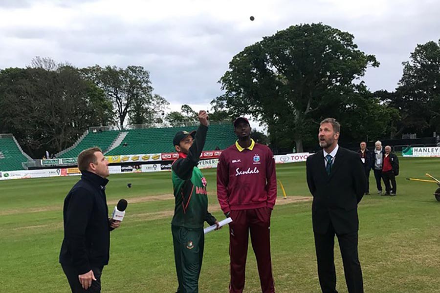 Bangladesh have won the toss and opted to field first against the West Indies in the final of the tri-nation series in Dublin.
