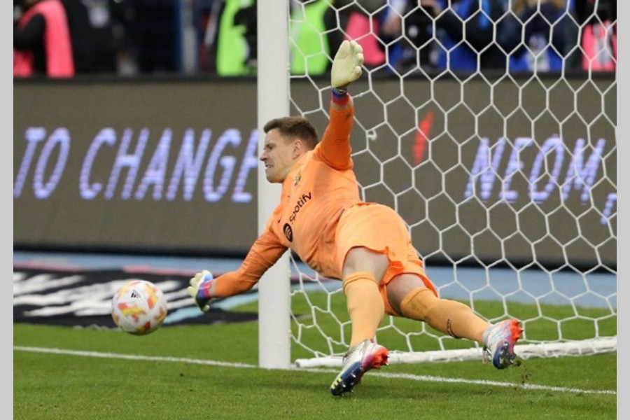Marc-Andre ter Stegen saved Juanmi's and William Carvalho's poorly-struck spot kicks to give Barcelona a 4-2 tiebreaker win over Betis after the teams had finished level at 2-2 following extra time in an exhilarating Spanish Super Cup semi-final in Saudi Arabia on Thursday.