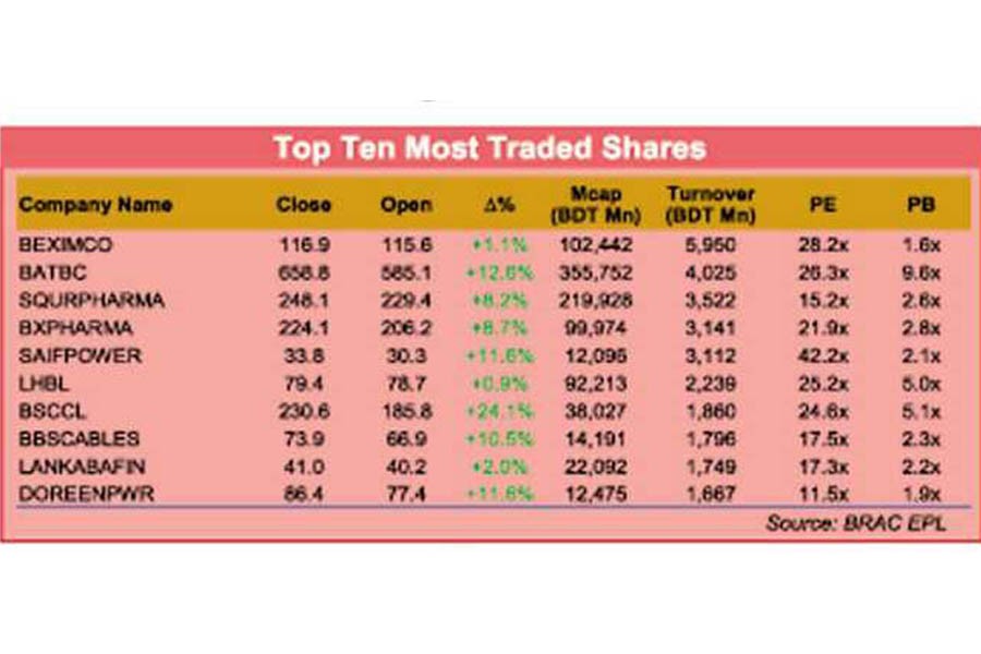 In last week, top 10 companies grabbed 21.28 per cent of weekly turnover featured by the premier bourse DSE.