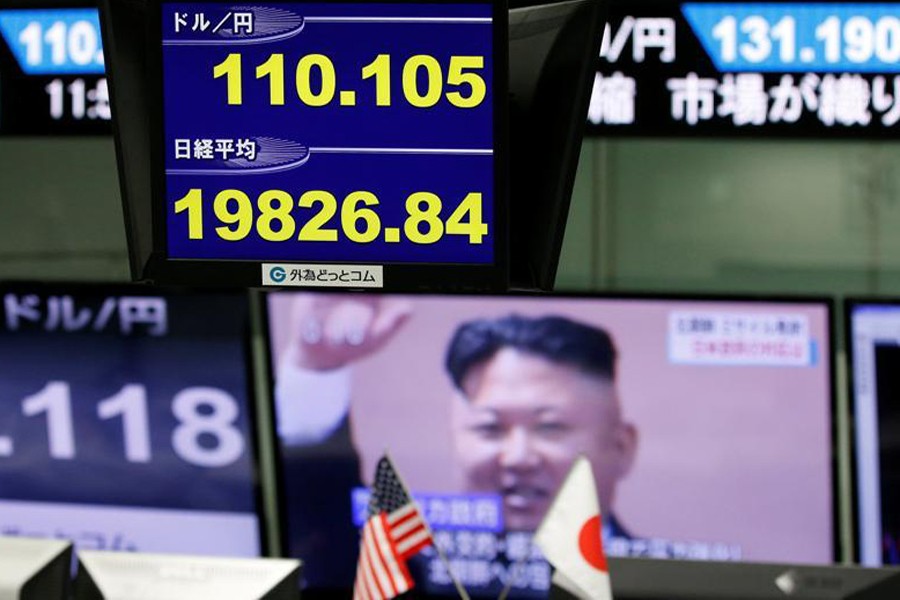 Asian stocks were mostly lower Friday after North Korea fired off another missile over Japan, ratcheting up geopolitical tensions and denting investor sentiment.