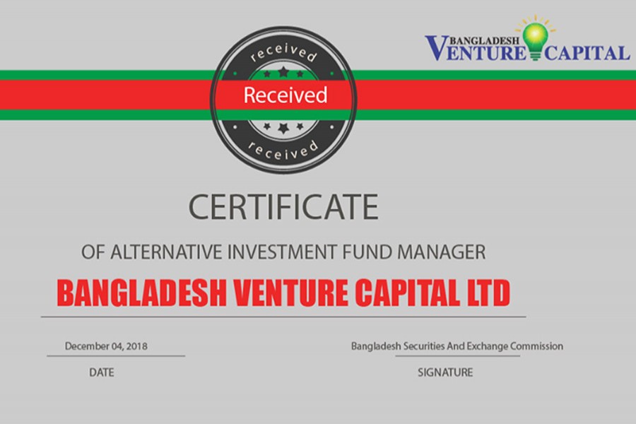 Bangladesh Venture Capital Ltd has received 'Alternative Investment Fund Manager' Licence from Bangladesh Securities and Exchange Commission under Bangladesh Securities and Exchange Commission (Alternative Investment) Rules, 2015.