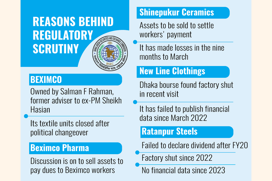 Md. Abul Kalam, a spokesperson of the Bangladesh Securities and Exchange Commission (BSEC), said the matters tied to joint share holding by sponsor-directors, submission of financial statements, and annual general meetings (AGMs) would be scrutinised to see if the companies were compliant.