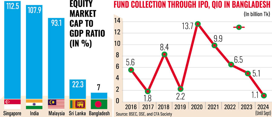 Bangladesh is 12 per cent of India in terms of population and 13 per cent when both nations' GDPs are taken into consideration. But in terms of IPOs between 2016 and 2023, Bangladesh is about 1 per cent of India.