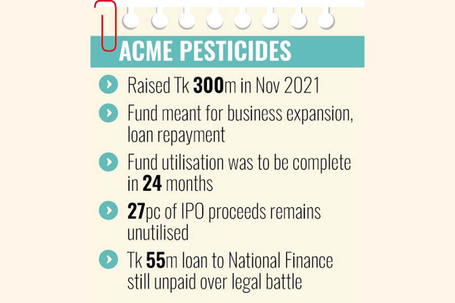 Acme Pesticides is one of the eight companies that the securities regulator in October last year decided to probe to see whether IPO funds had been used properly.