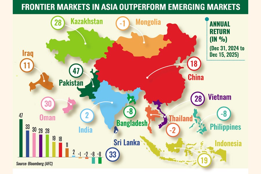 Although Asian frontier markets have significantly outperformed the region for a third consecutive year in 2025, the Bangladesh market posted another year of negative returns due to political uncertainties and regulatory developments.