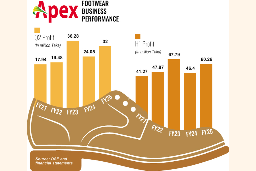 The country's leading shoemaker and exporter has reported a 33 per cent year-on-year growth in profit to Tk 32 million in the second quarter through December last year of FY25.