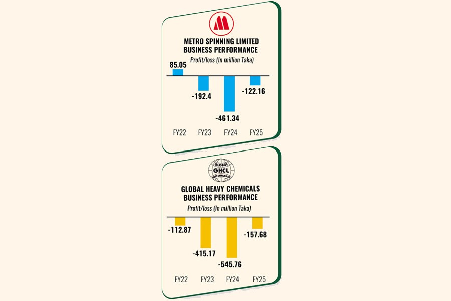 The auditor of Metro Spinning reported that the company has been incurring consecutive losses, pushing retained earnings to a negative Tk 583.70 million, which poses a serious risk to its sustainability.