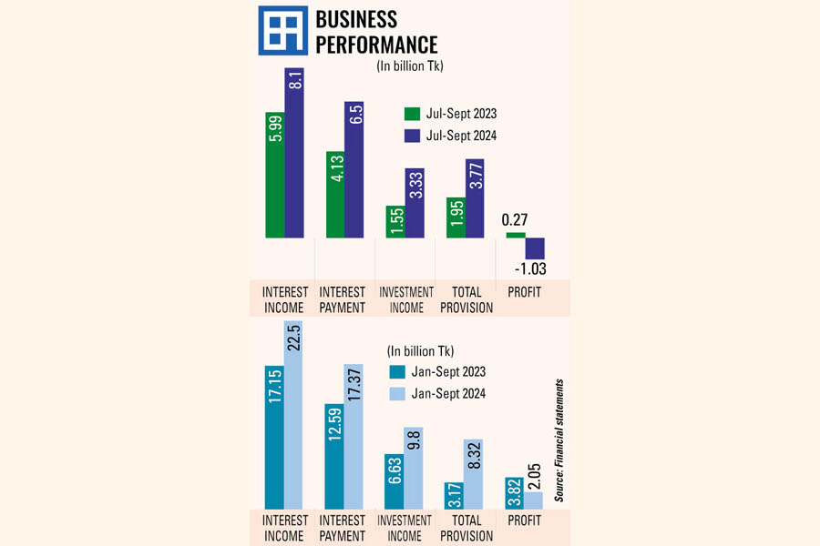 Hence, its net interest income fell 14 per cent year-on-year to Tk 1.60 billion in the third quarter.