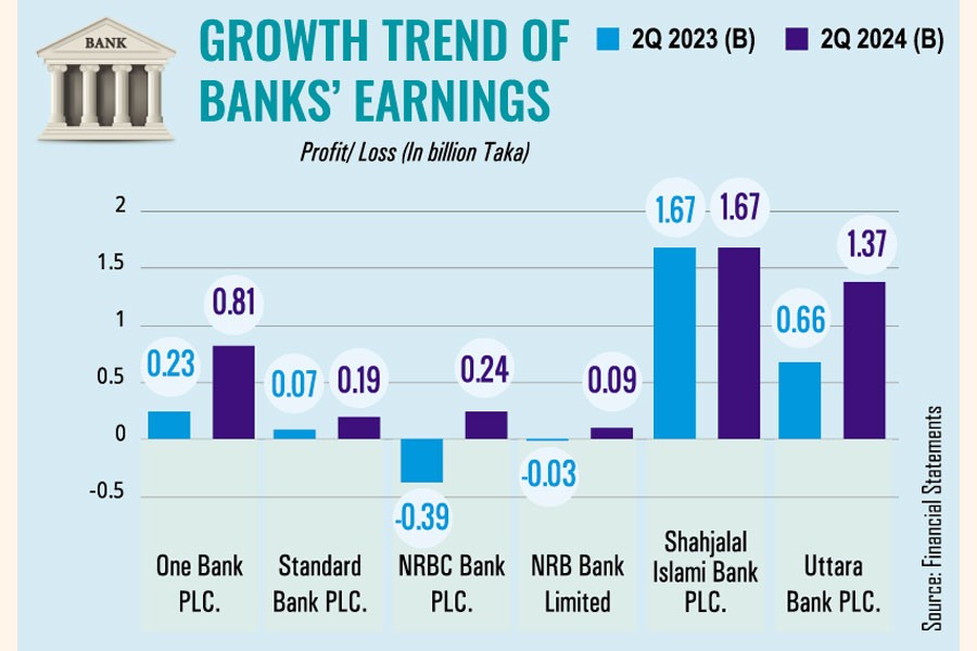 Among the banks, which published second quarter financial statements until Sunday, ONE Bank posted the highest surge in profit year-on-year for April-June this year.
