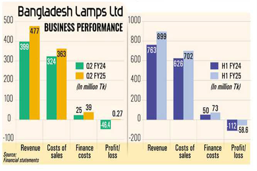 Bangladesh Lamps, widely known as BD Lamps, returned to profit in the second quarter (Q2) through December of FY25, after big losses in the same quarter a year before, riding on higher sales and optimization of operating expenses.