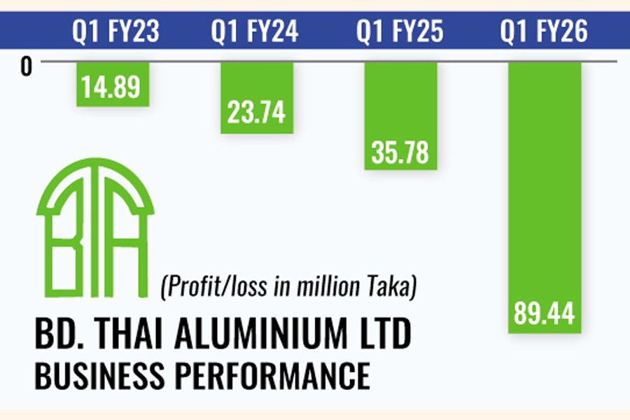Bd. Thai Aluminium posted a 2.5 times higher loss in the first quarter of FY26 compared to the same quarter of the previous year, amounting to Tk 89.44 million.