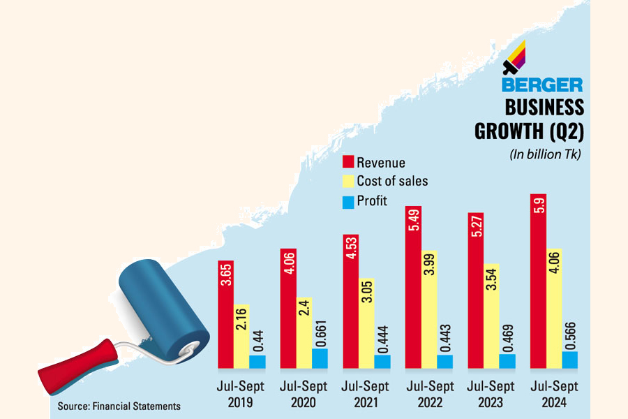 The market leader in the paints industry in Bangladesh posted a 12 per cent year-on-year growth in sales to Tk 5.90 billion in Q2 this year, while the cost of sales grew nearly 15 per cent year-on-year to Tk 4.06 billion.