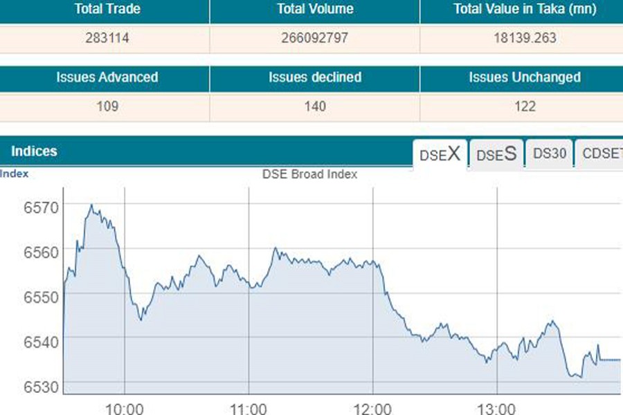 Losers, however, took a modest lead over the gainers, as of the 371 issues traded, 140 declined, 109 advanced and 122 others remained unchanged on the DSE trading floor.