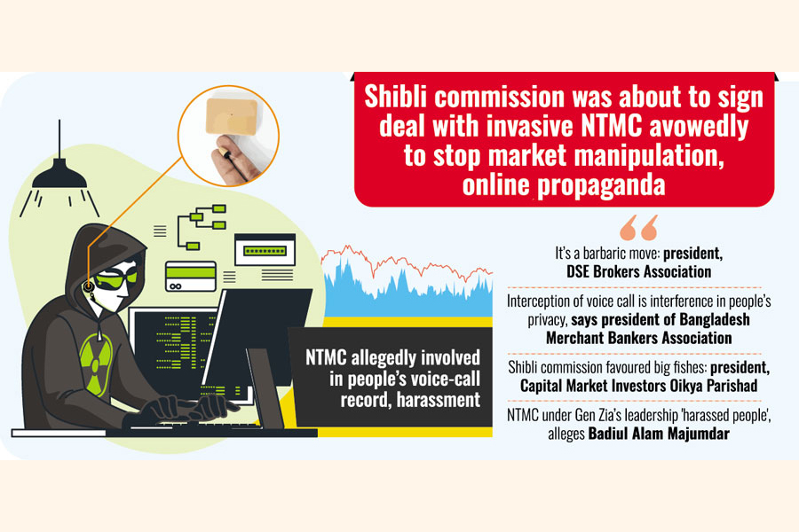 Mr Islam said taking additional assistance through using phone- interception equipment to monitor investors' activity will be detrimental to the sector. "No countries in the world do such surveillance," he says, adding: "We know how people were harassed by the NTMC."