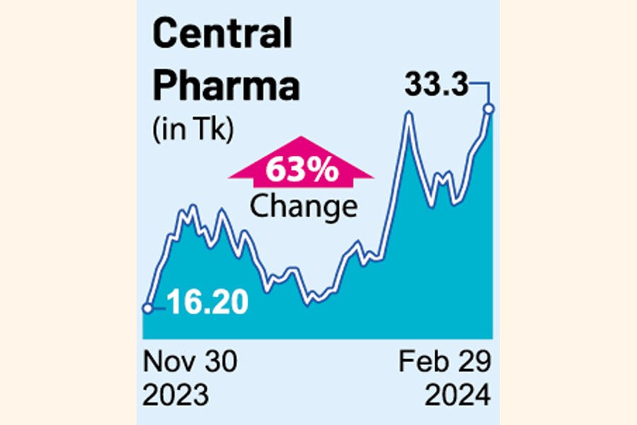 Central Pharmaceuticals Limited's stock price surged by over 63 per cent in just one month on the Dhaka Stock Exchange (DSE), despite a lack of apparent catalysts to justify investors' interest in the stock.