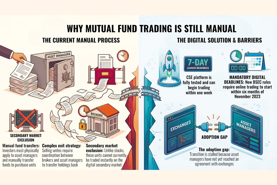 The Chittagong Stock Exchange (CSE) completed setting up an online trading platform nearly a year ago and also conducted a mock trading session. According to the CSE, trading in open-ended funds could begin within just seven days.