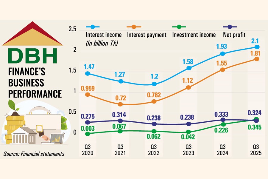 If profits in the first three quarters are taken together, DBH Finance remains on a growth trajectory. Its profit rose to Tk 744 million in January-September this year from Tk 741 million in the same period of the previous year, driven by higher investment income.