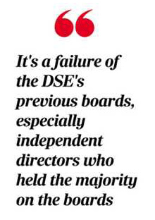 "Definitely, it's a failure of the DSE's previous boards, especially independent directors who held the majority on the boards," said Minhaz Mannan Emon, one of the shareholder-directors of the Dhaka bourse.