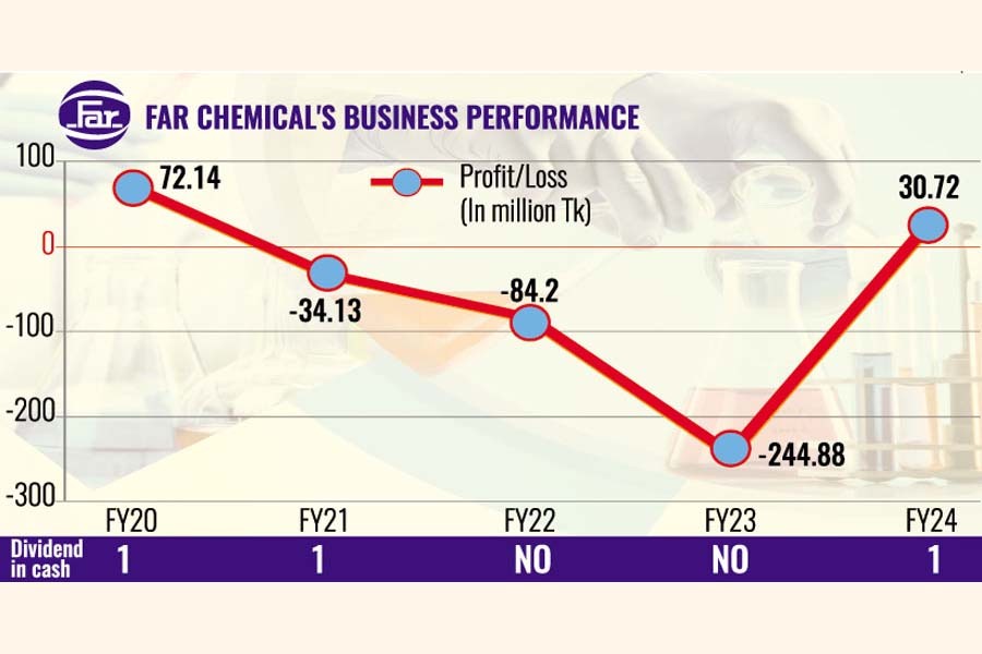 Before the merger, Far Chemical that produced textile dyeing products was in the red for the three years to FY23. Its cumulative losses amounted to Tk 362 million.