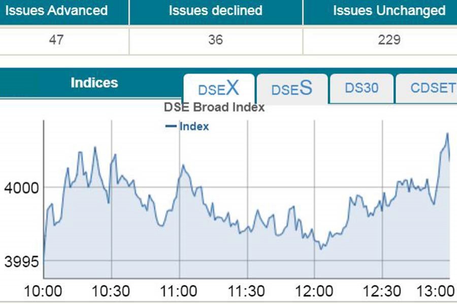DSEX, the key index of the DSE, went up by 7.15 points or 0.17 per cent to settle at more than one month high at 4,001, since May 31.