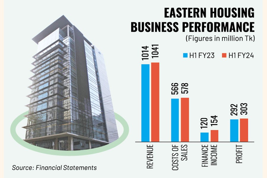 Eastern Housing's annual profit, however, grew 25 per cent year-on-year to Tk 688 million in FY23 despite a 7 per cent drop in revenue to Tk 3.08 billion.