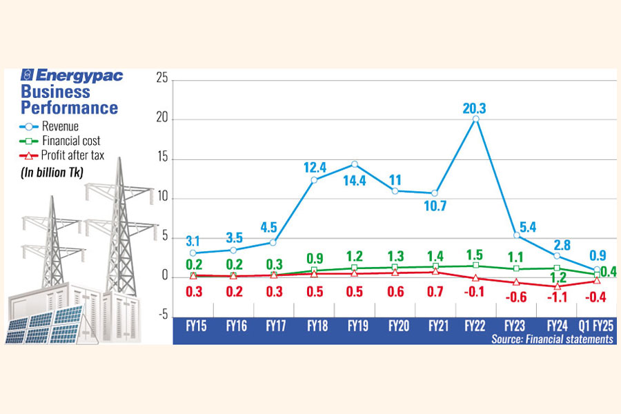 Energypac used to earn nearly 40 percent of its revenue from power producing subsidiaries. But the company sold or disposed of the subsidiaries in FY23 as the government did not renew its power-purchasing deal with it.